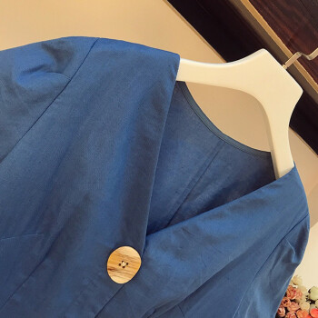 歌诺瑞丝大码女装胖mm连衣裙夏装新款文艺宽松显瘦休闲气质减龄韩版遮肚子V领中长款裙子 蓝色 XL 推荐120-140斤 |