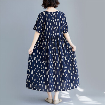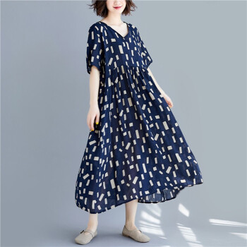 零点蚂蚁新款加肥加大码女装胖mm夏装洋气休闲时尚韩版v领收腰遮肉宽松连衣裙胖人女装胖妹妹裙子 图片色 均码【110-200斤】 |
