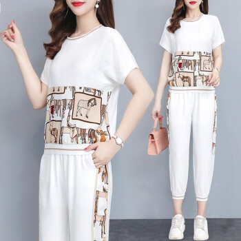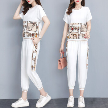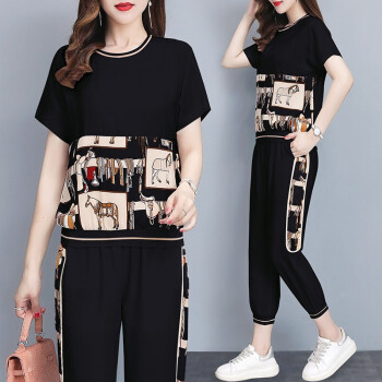 睡妍 大码女装套装女夏夏季新品韩版时尚套装减龄洋气宽松显瘦九分裤短袖休闲运动套装两件套女夏 黑色 L(98-110左右) |