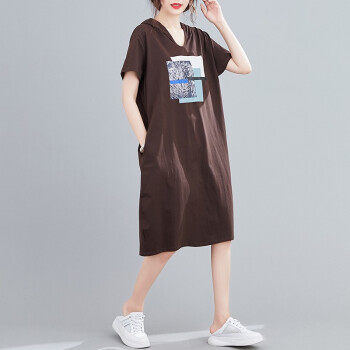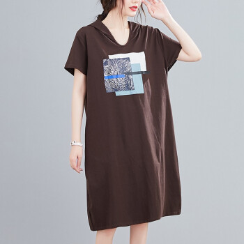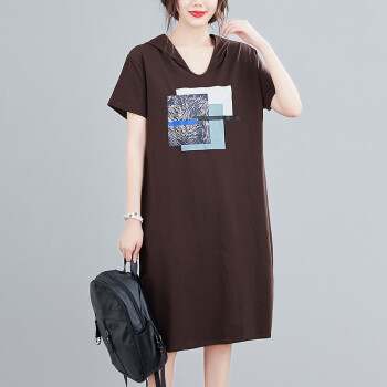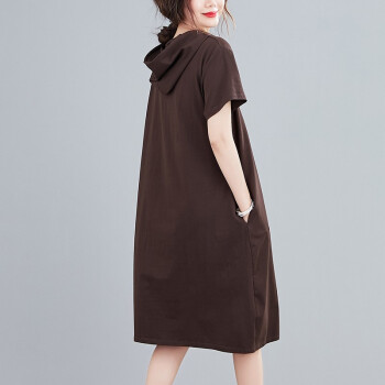零点蚂蚁大码女装胖mm休闲简约韩版宽松遮肉连衣裙胖妹妹夏装连帽中长款t恤裙子胖人女装 图片色 均码【100-180斤】 |