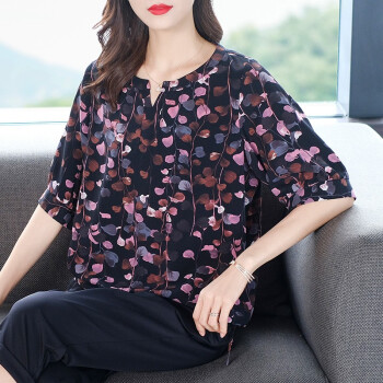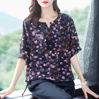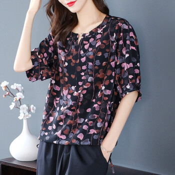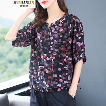 木棉林胖妹妹mm短袖上衣加大码女装新款夏装洋气印花宽松遮肚子显瘦T恤Z202729 黑色 3XL建议160-180斤 |