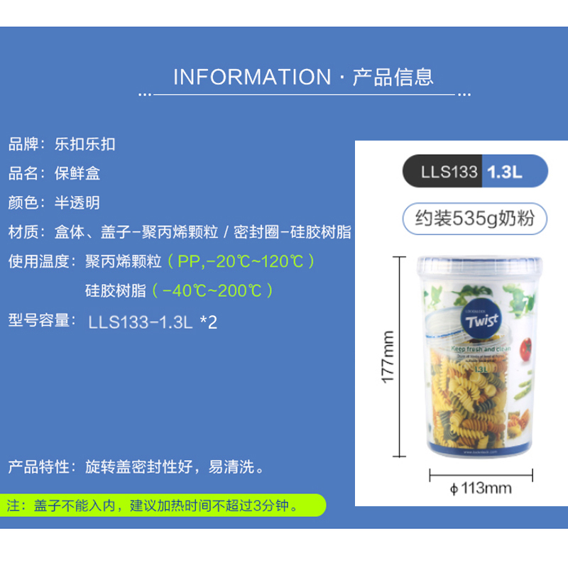 圆形塑料保鲜盒两只装 1.3L*2【塑料/透明】 |