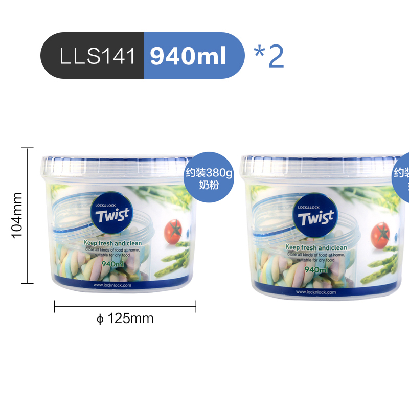 圆形塑料保鲜盒两只装 940ML*2【塑料/透明】 |