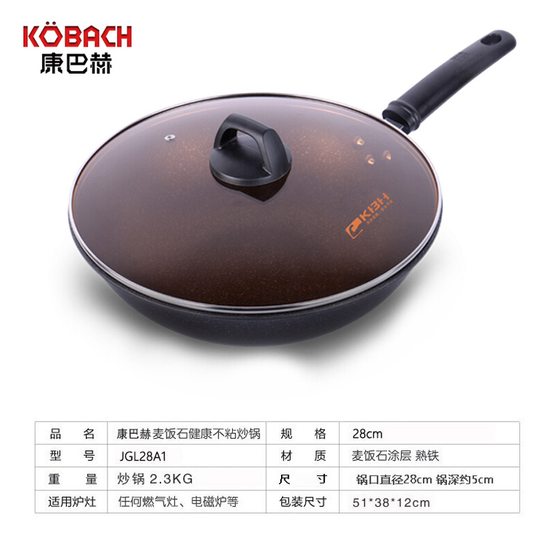 康巴赫煎锅不粘锅麦饭石平底锅28cm【麦饭石/灰色】 |
