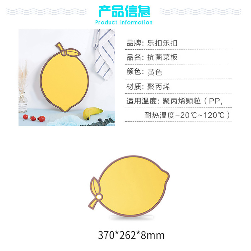 创意卡通家用塑料抗菌砧板水果辅食砧板切菜板370*262*8mm【塑料/黄色柠檬】 |