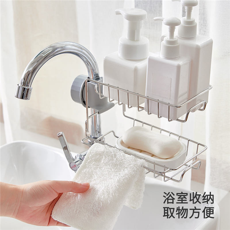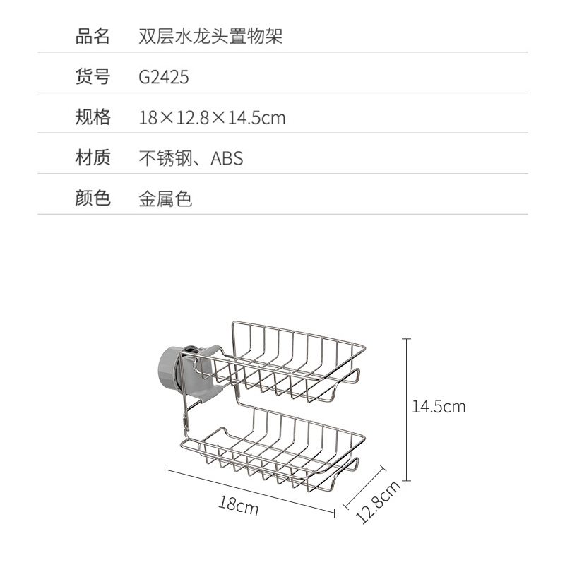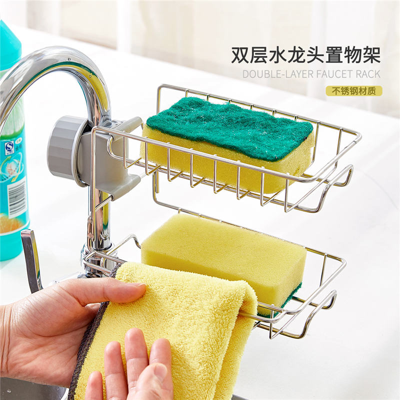 厨房卫生间收纳双层水龙头置物架【不锈钢 ABS/图片色】 |