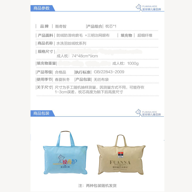 水洗羽丝绒枕(单只 74*48cm)【面料:纯棉磨毛 填充:超细纤维(1000克)/白】 |