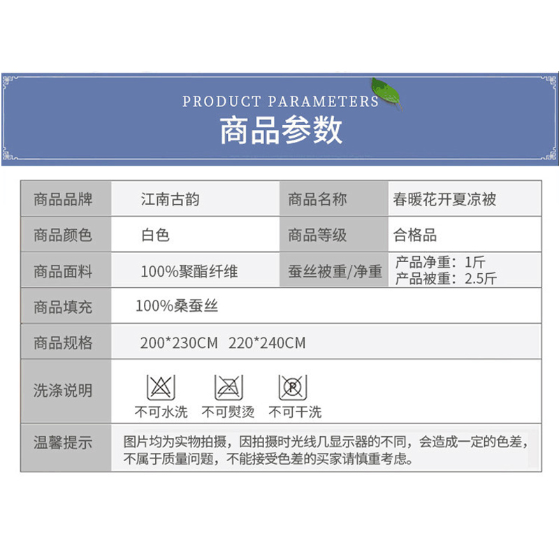 【超值单品】夏凉被100%桑蚕丝被重2.5斤轻柔舒适贴身被子【桑蚕丝/白色】 |