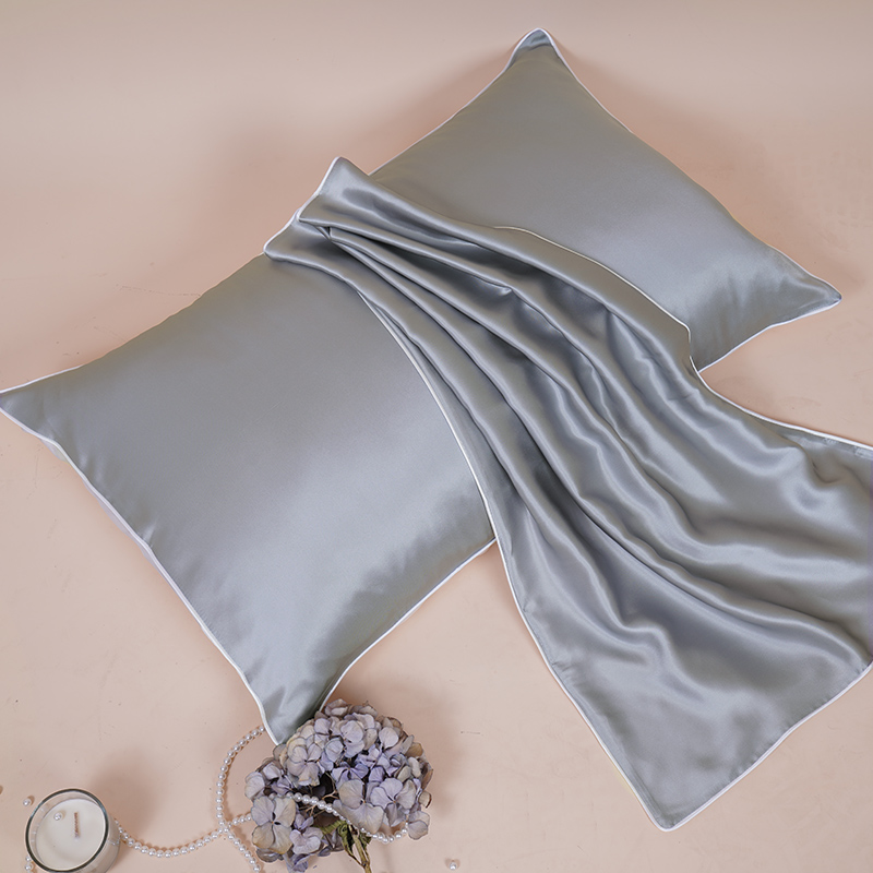 【超值单品】一对装真丝枕套健康舒适低调轻奢简约睡眠枕套【A面桑蚕丝B面聚酯纤维/灰色】 |