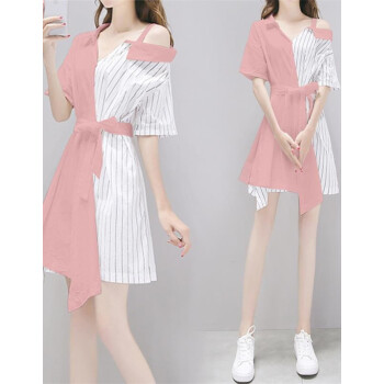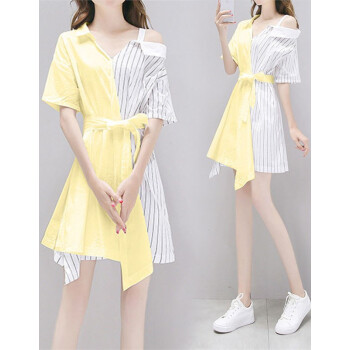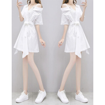 予蒙 一字肩修身吊带连衣裙女夏季新款韩版流行小个子显瘦女装气质超仙名媛夏装衬衫裙子 白色 M(建议100-110斤) |