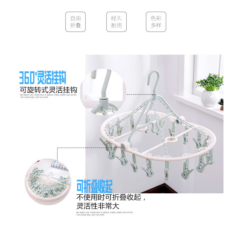 【2个】18夹折叠衣架【PP/粉色】 |