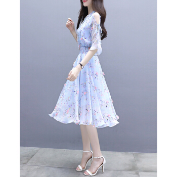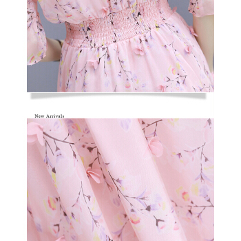 欧芙伦碎花雪纺连衣裙女夏季新款韩版时尚气质显瘦减龄收腰中长款裙子女5935 粉色 M |
