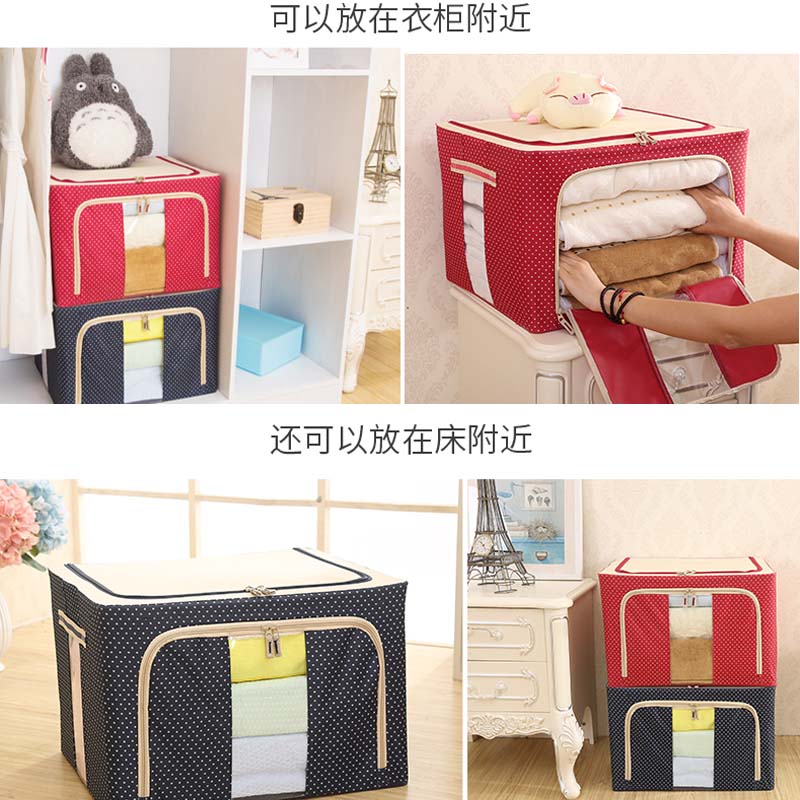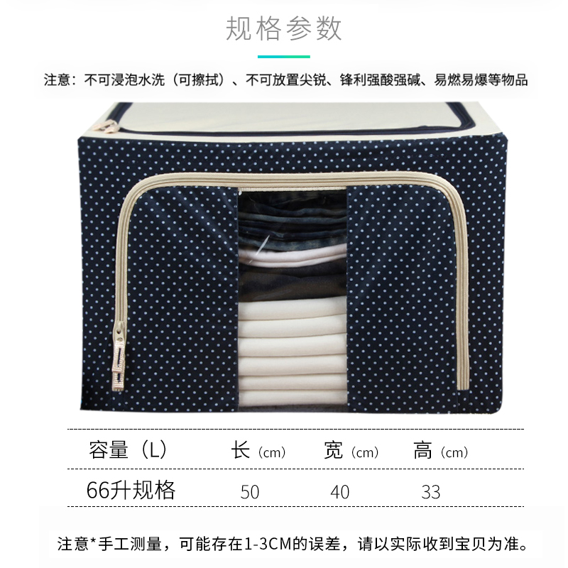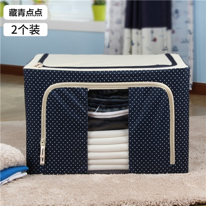 带钢架牛津布收纳箱2个【牛津布+三钢架/藏青色点点】 |