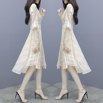 莱倪晟纳短袖连衣裙女装夏季新款韩版收腰显瘦印花性感沙滩裙子女潮 图片色 请拍正确尺码 |