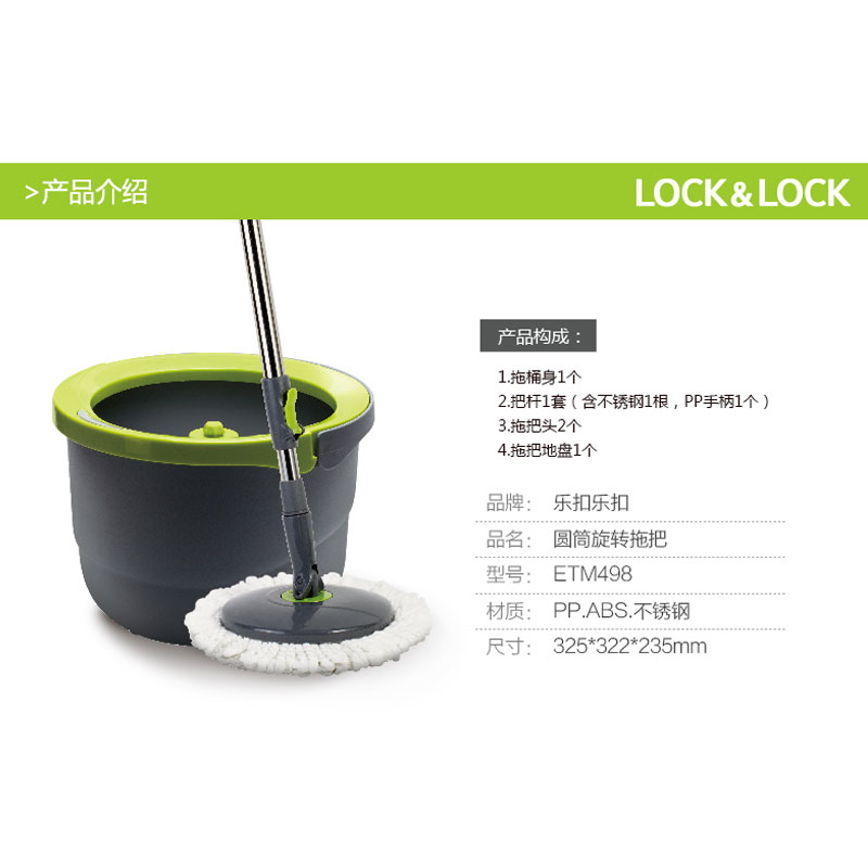 单桶旋转拖把自动甩水桶【PP+PE、ABS/不锈钢、超细纤维/绿色】 |