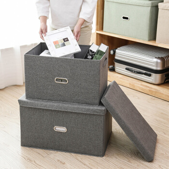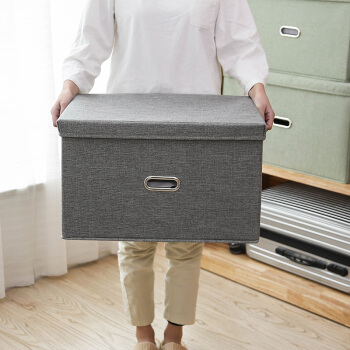 简纳 无纺布收纳箱整理箱收纳盒布艺箱子储物箱有盖亚麻收纳盒 灰色 大号(44*29*30) |
