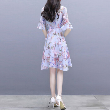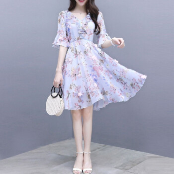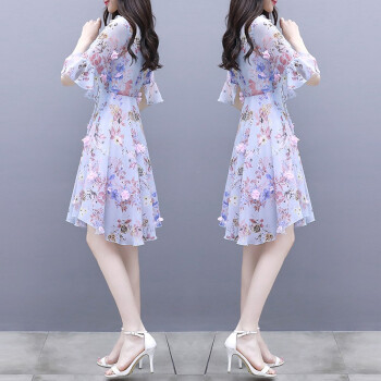 莱倪晟纳雪纺连衣裙女装夏季新款韩版中长款宽松显瘦性感沙滩裙子女潮 蓝色 请拍正确尺码 |
