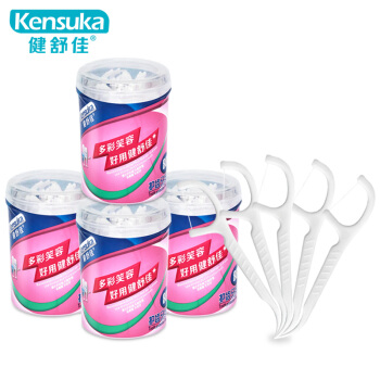 健舒佳 牙线棒 专业洁齿弹韧圆线80支x4筒 清洁齿缝超细牙线剔牙签 优雅款 |