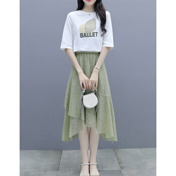 莱倪晟纳短袖连衣裙女装夏装新款韩版宽松显瘦气质女神范两件套装中长裙子 绿色 请拍正确尺码 |