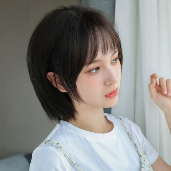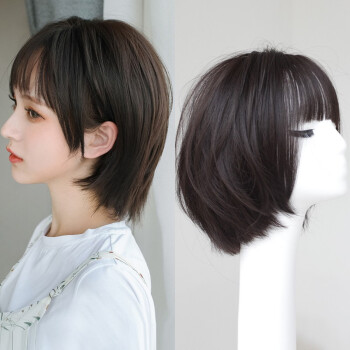 纵美 假发女短发 刘海假发套时尚气质自然逼真波波头套 棕黑色+护理五件套 |