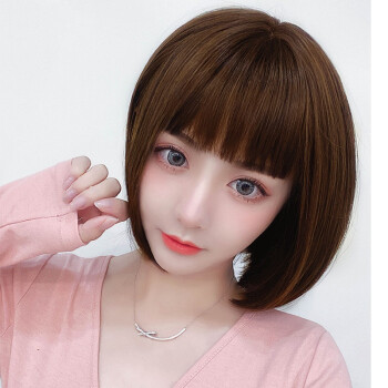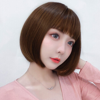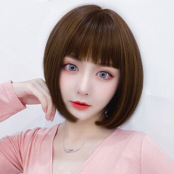 蔓茵假发女短发bobo头真发丝递针中分仿真空气刘海波波头自然逼真圆脸假发套网红学生黑 自然黑【仿真发丝】 |