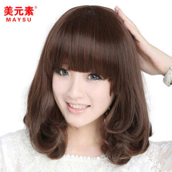 美元素 假发 女 齐刘海可爱修脸仿真蓬松梨花头卷发女士假发套hg66 2t33号深栗色 |