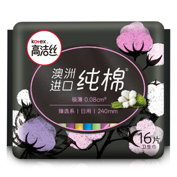 高洁丝Kotex 臻选澳洲进口纯棉0.08极薄240mm16片 日用超薄卫生巾 |