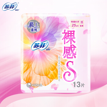 苏菲Sofy 极上裸感S极薄棉柔超柔软超薄特别量多日用卫生巾250mm 13片 |
