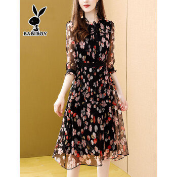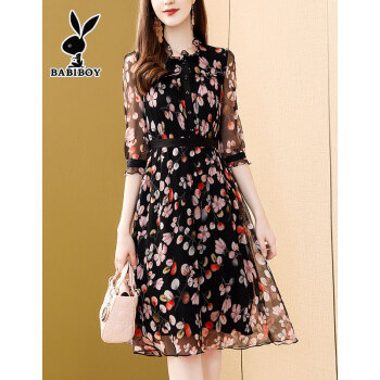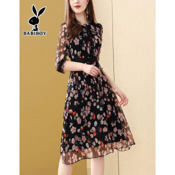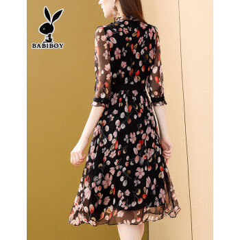 BABIBOY 连衣裙女夏季新款女装高腰中长款韩版时尚气质百搭收腰显瘦洋气裙子 图片色 M |