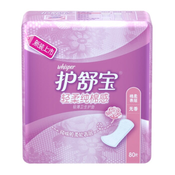 护舒宝(Whisper)超薄 轻柔纯棉感卫生护垫 无香 80片 ( 清爽透气) |
