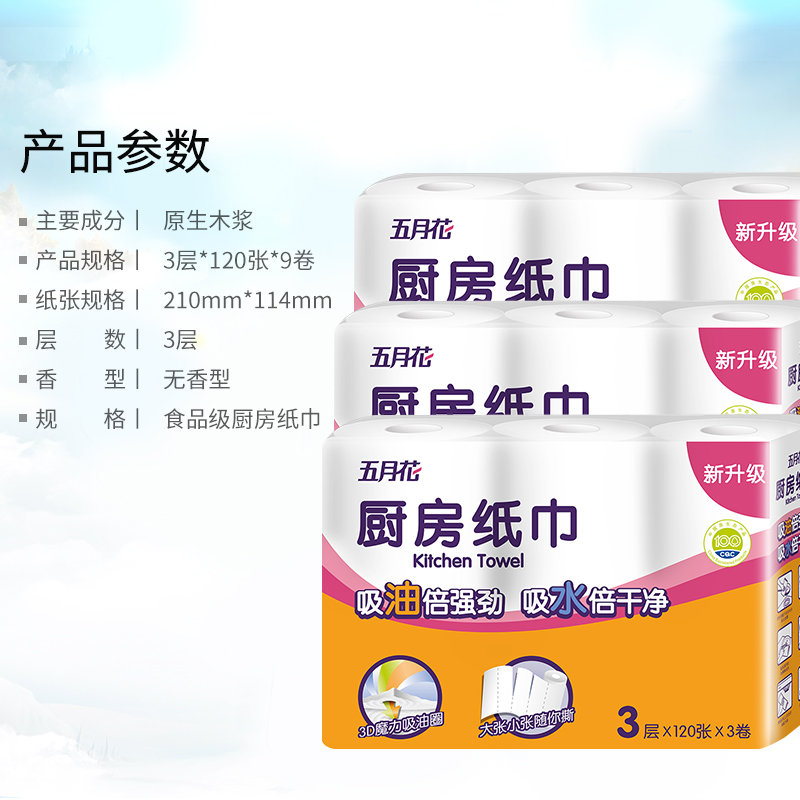 五月花食品级厨房卷纸吸水吸油纸 9卷 |