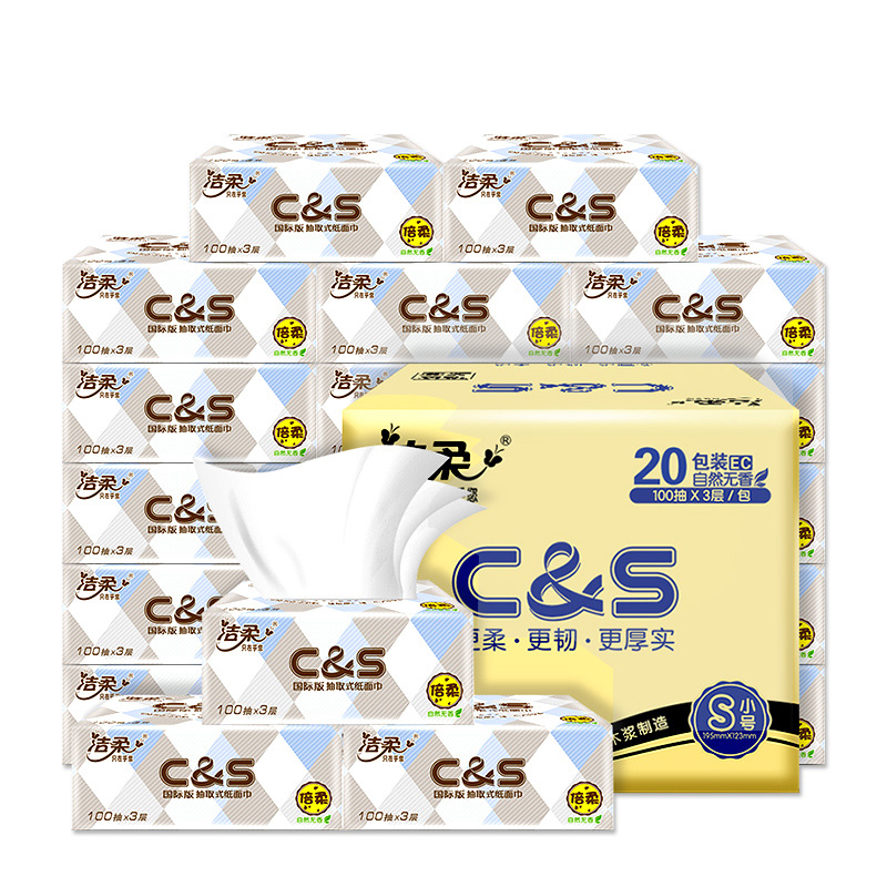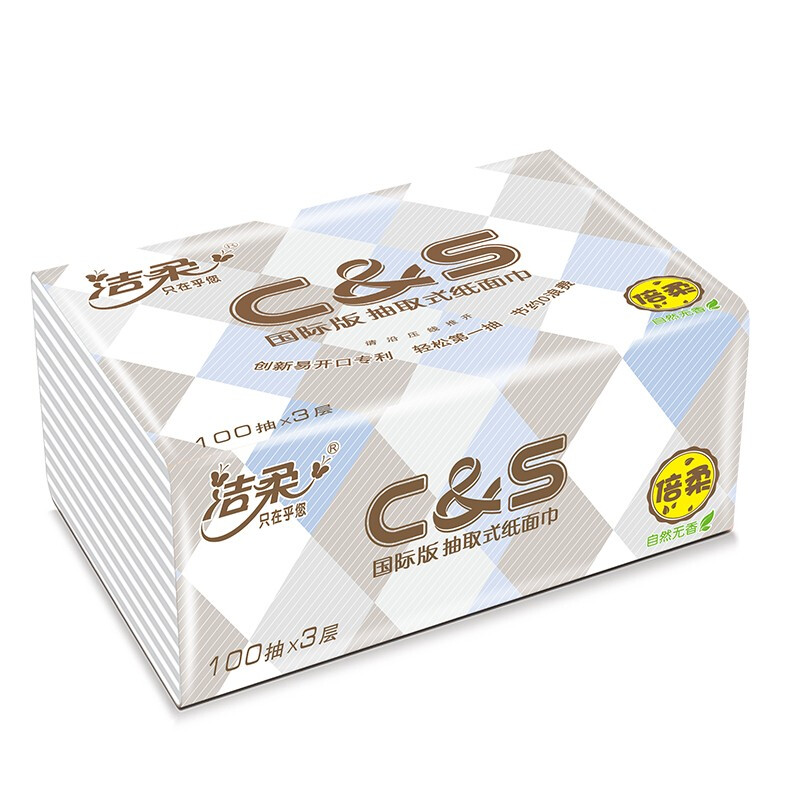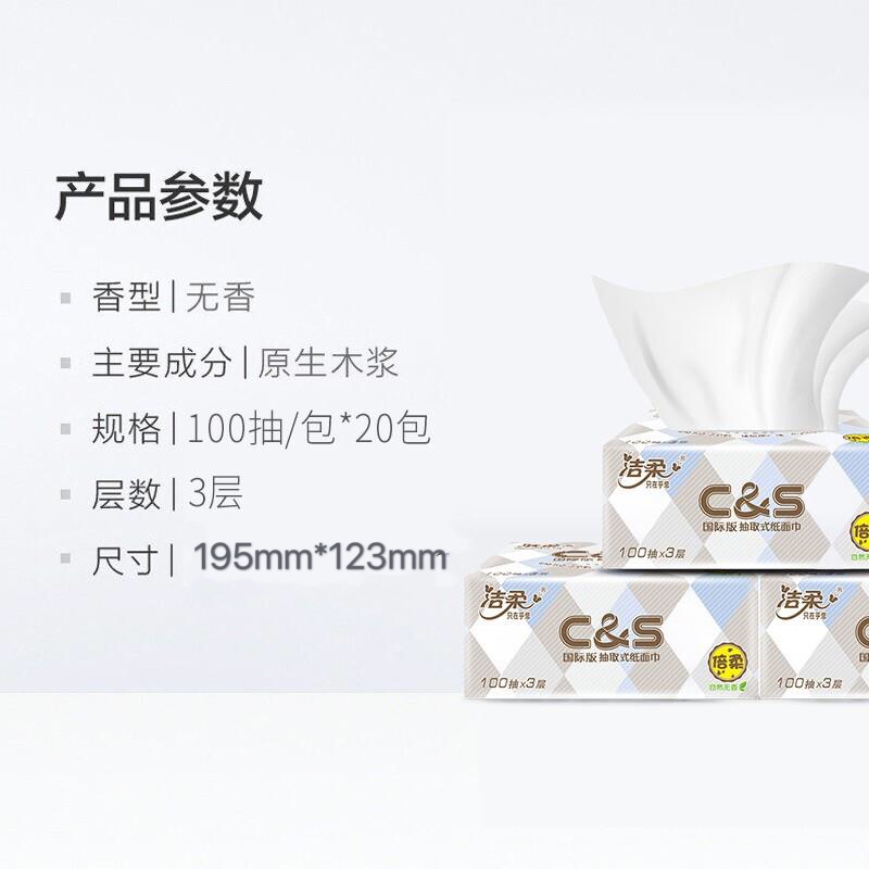 洁柔纸面巾(布艺方格软抽)3层100抽20包 |