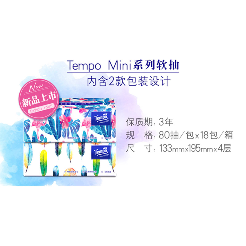 得宝4层抽取式面巾纸箱装18包×80抽(Mini系列) |