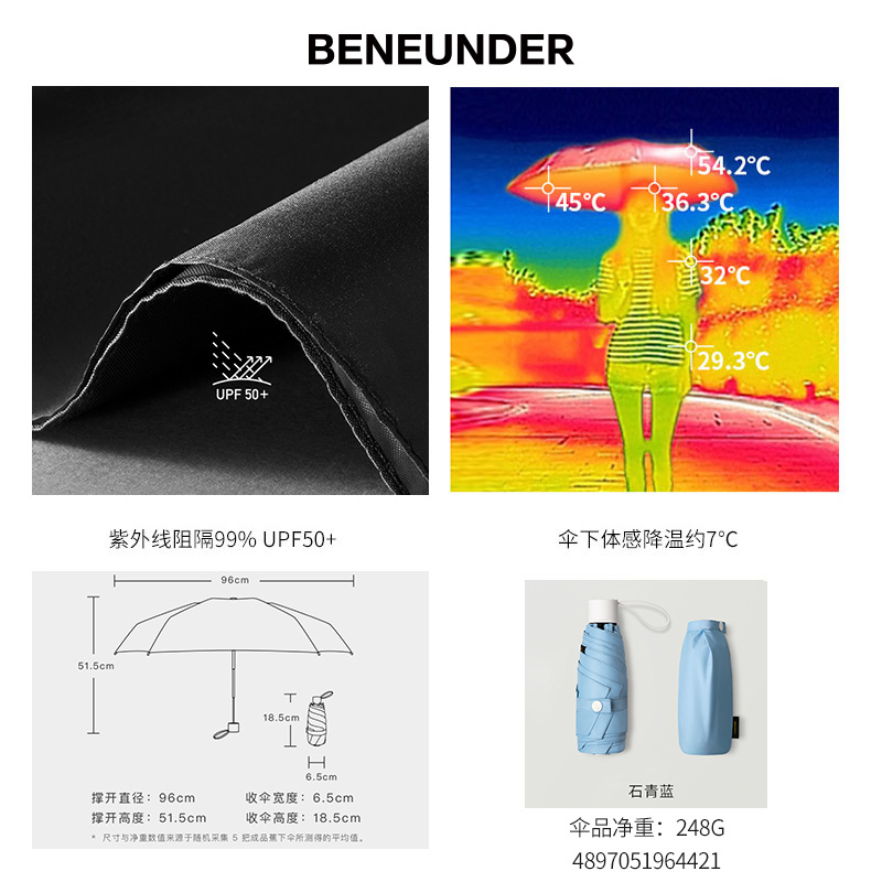 BANANAUNDER蕉下 纸意太阳伞 小巧便携折叠两用晴雨伞遮阳防晒防 彩胶【聚酯纤维/石青蓝】 |
