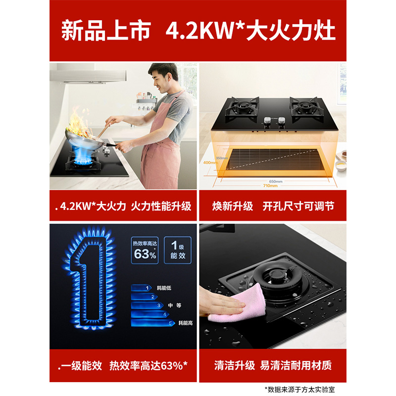 HT9BE 多开孔尺寸 4.2KW*大火力 一级能效 易清洁 燃气灶【钢化玻璃/黑色】 |