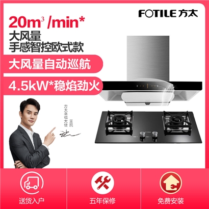 EMD20T+TH2B 手感智控风魔方 20m3/min*大风量 4.5KW*大火力 烟灶套装【不锈钢+钢化玻璃/黑色】 |