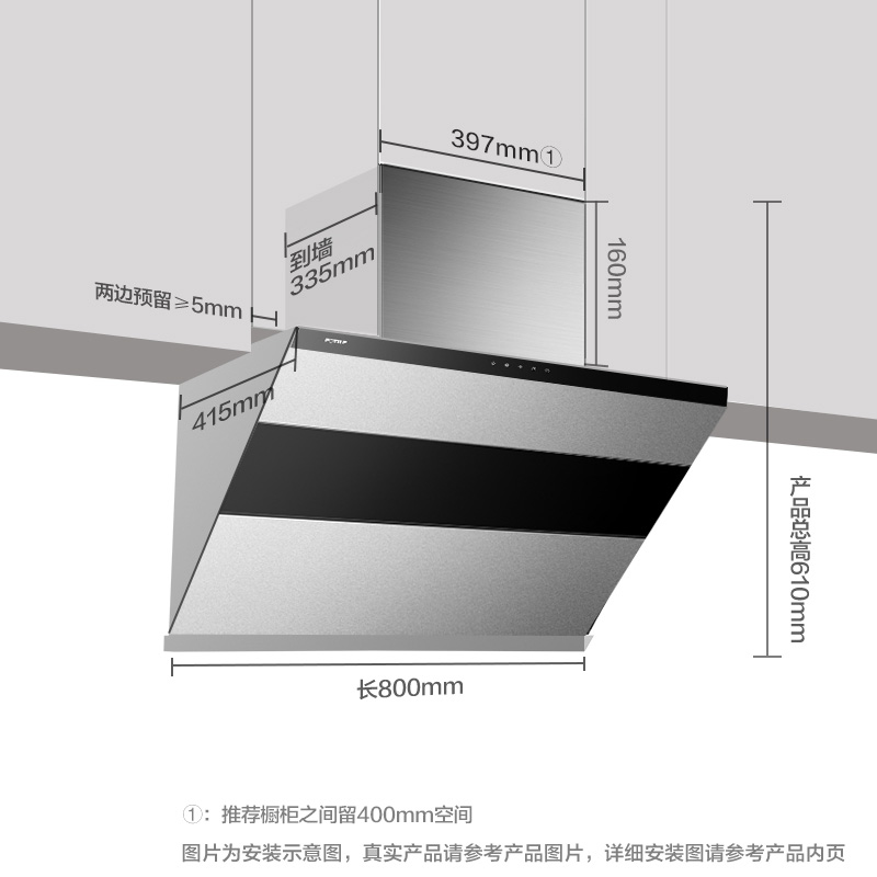 JQ26TA 自动巡航增压 20m3/min大风量 全自动隔烟屏 侧吸抽油烟机【不锈钢+钢化玻璃/黑色】 |