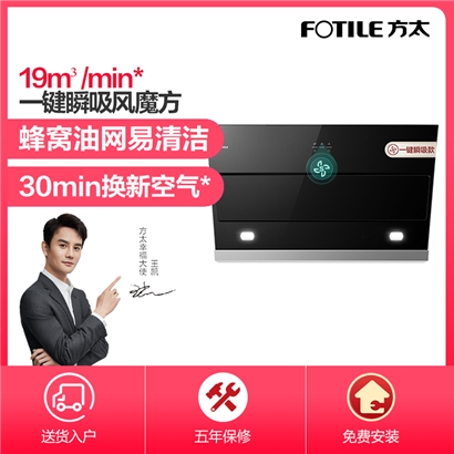 JQC5 一键瞬吸 19m3/min*大风量 30min换新空气* 侧吸抽油烟机 【不锈钢+钢化玻璃/黑色】 |