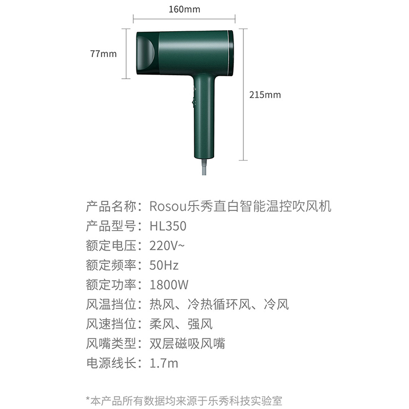 直白HL350负离子护发电吹风机速干家用大功率绿冷热变频风筒【ABS/绿色】 |