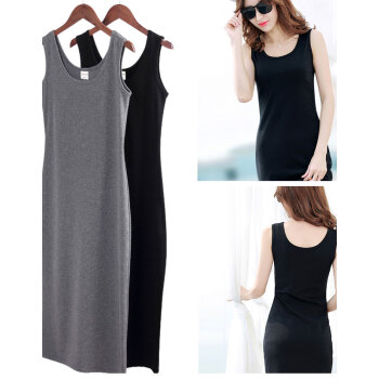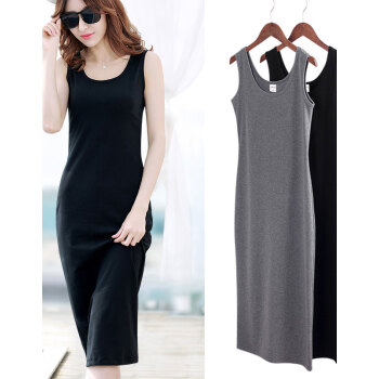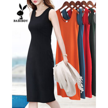 BABIBOY 吊带连衣裙女中长款夏季新款吊带背心时尚女装修身显瘦洋气无袖裙子 黑色 M |