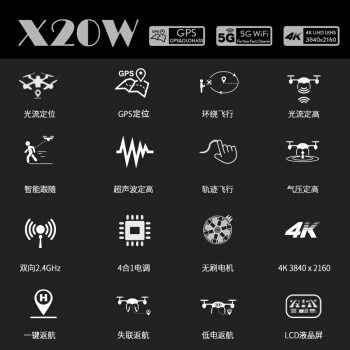 诺巴曼X20W折叠无刷超声波双GPS返航 4K专业高清无人机航拍器遥控飞机男孩儿童玩具航模四轴飞行器 双电续航40分钟+GPS折叠无刷+超声波4重定位 |