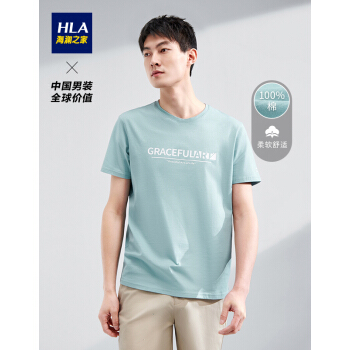 HLA海澜之家舒适半袖短袖T恤夏季新品圆领字母印花套头衫男HNTBJ2Q137A 浅绿花纹D7 175/92A/L |
