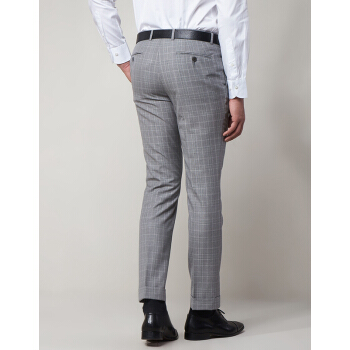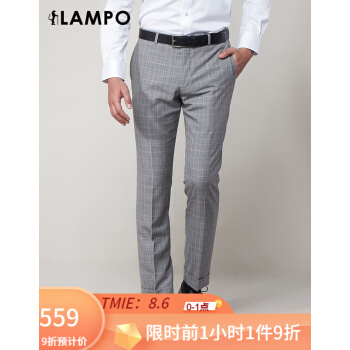 LAMPO/蓝豹春夏商场同款男士西裤商务浅灰底格林格全羊毛套装西裤超修身西服裤 浅灰底格林格 84 |