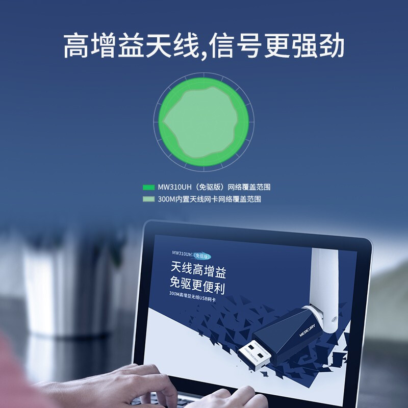水星(MERCURY)usb无线网卡台式机电脑wifi接收器网卡外置天线 MW310UH免驱 |