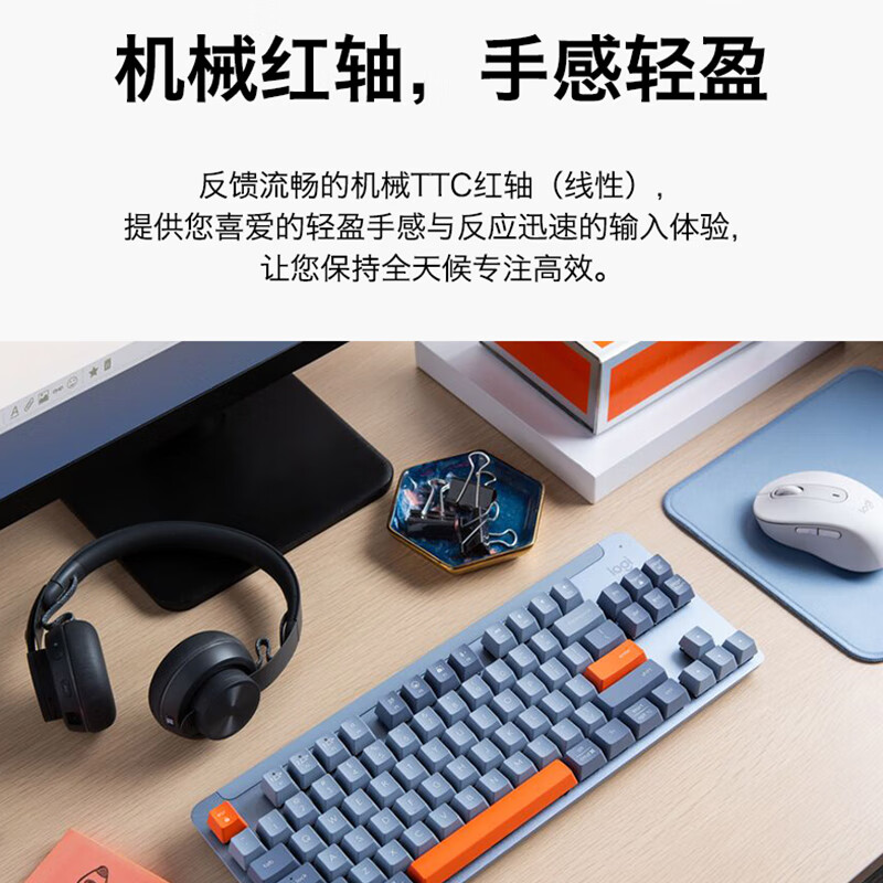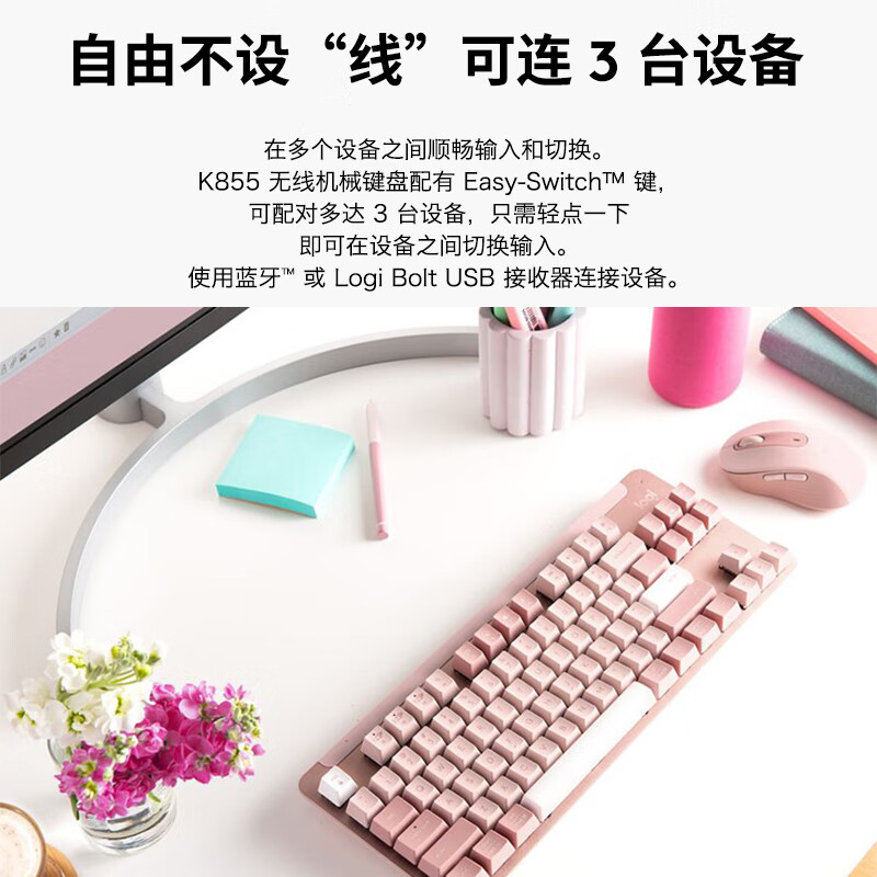 罗技(Logitech)K855无线机械键盘 无线键盘 蓝牙键盘 游戏办公键盘 84键 粉色 TTC红轴 带Logit Bolt接收器 |