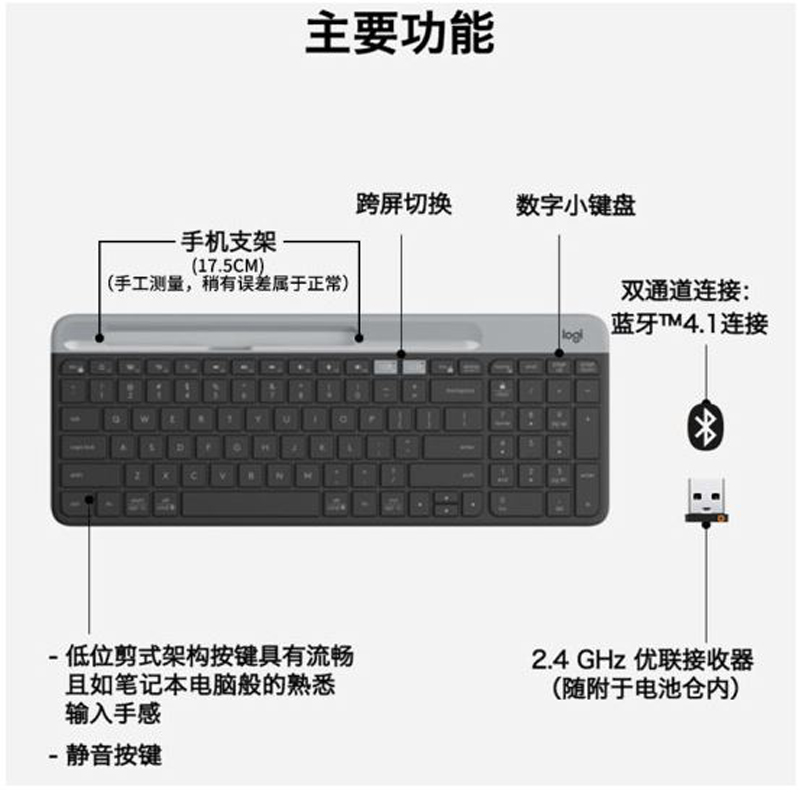 罗技(Logitech)K580无线蓝牙键盘 办公商务家用便携超薄键盘 平板手机通用键盘 K580黑色 |