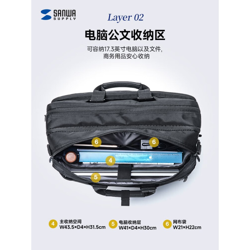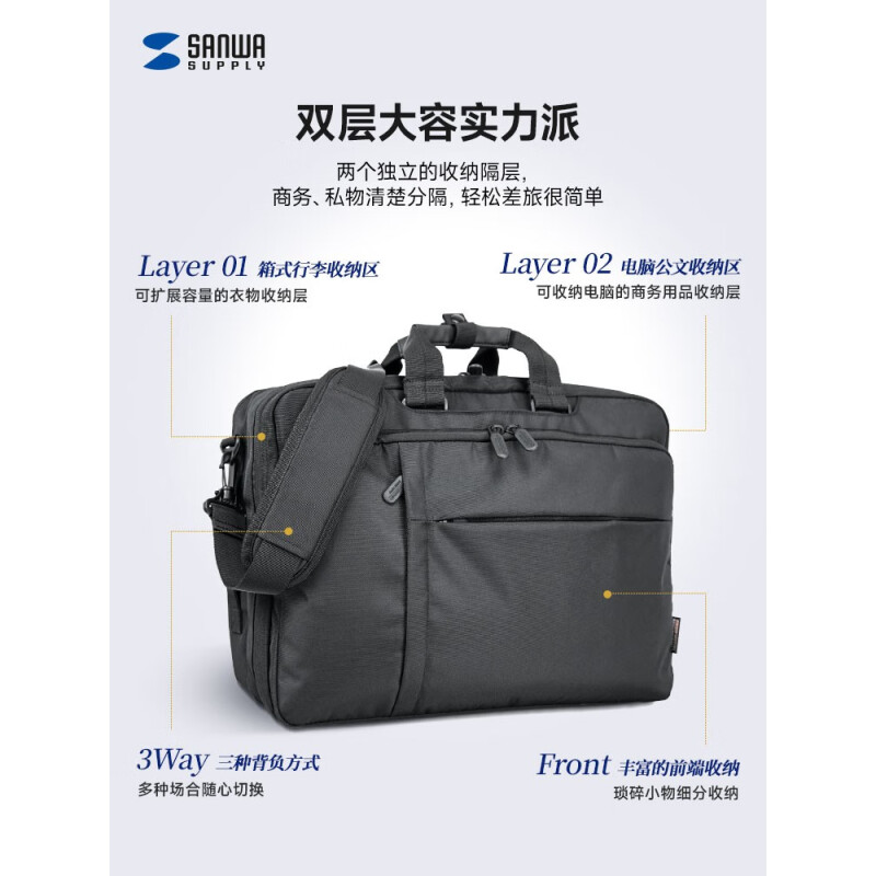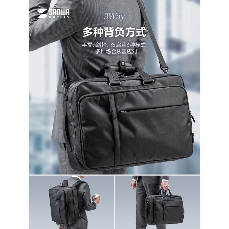 SANWA SUPPLY山业笔记本电脑包 大容量手提包 双肩背包男 单肩包斜跨包 公文包 黑色 17.3英寸 |