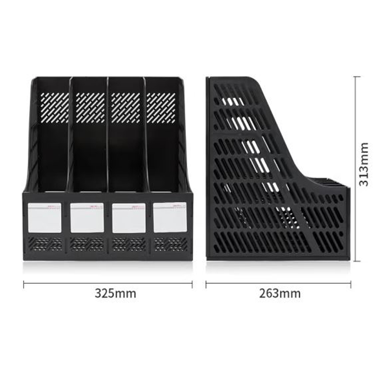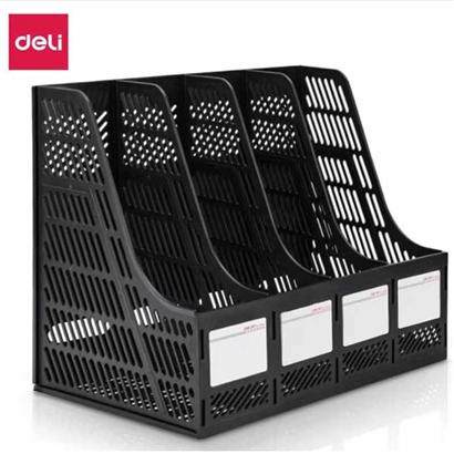 得力(deli) 9848 四联镂空桌面文件框 办公室桌面多层资料架子四栏带标签稳固文件栏 黑色 |