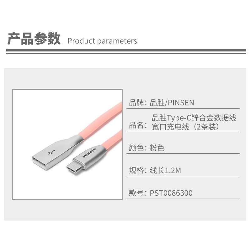 锌合金TYPE-C数据线(2条装)【ABS/粉色】 |