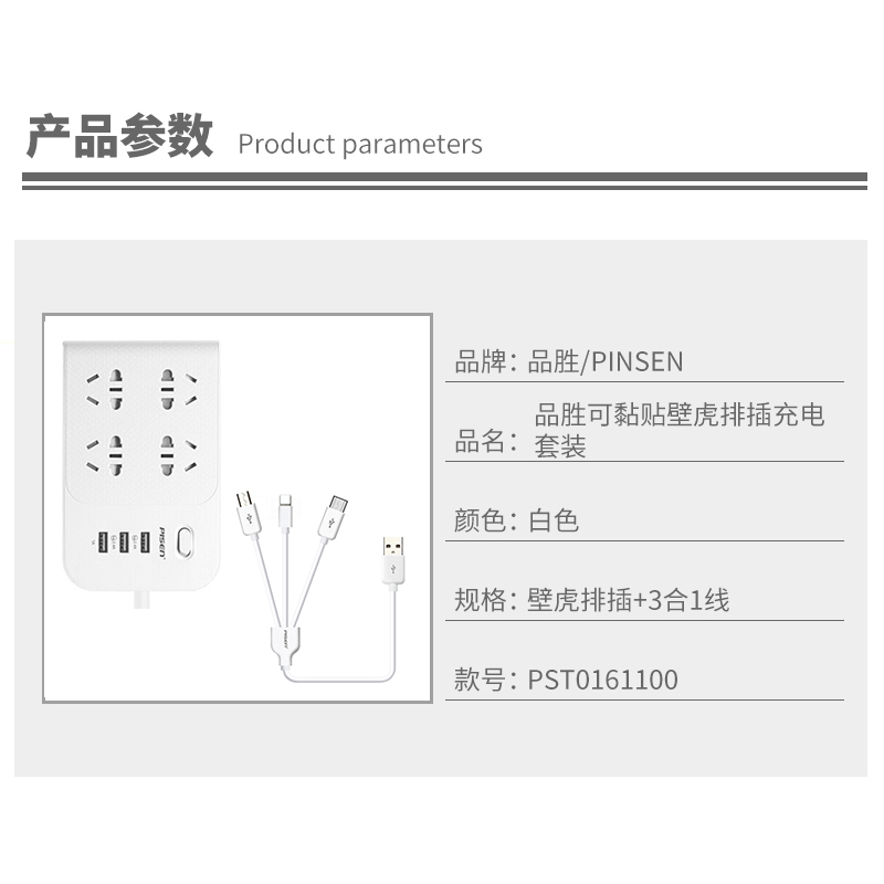 可黏贴壁虎排插充电套装【ABS/白色】 |